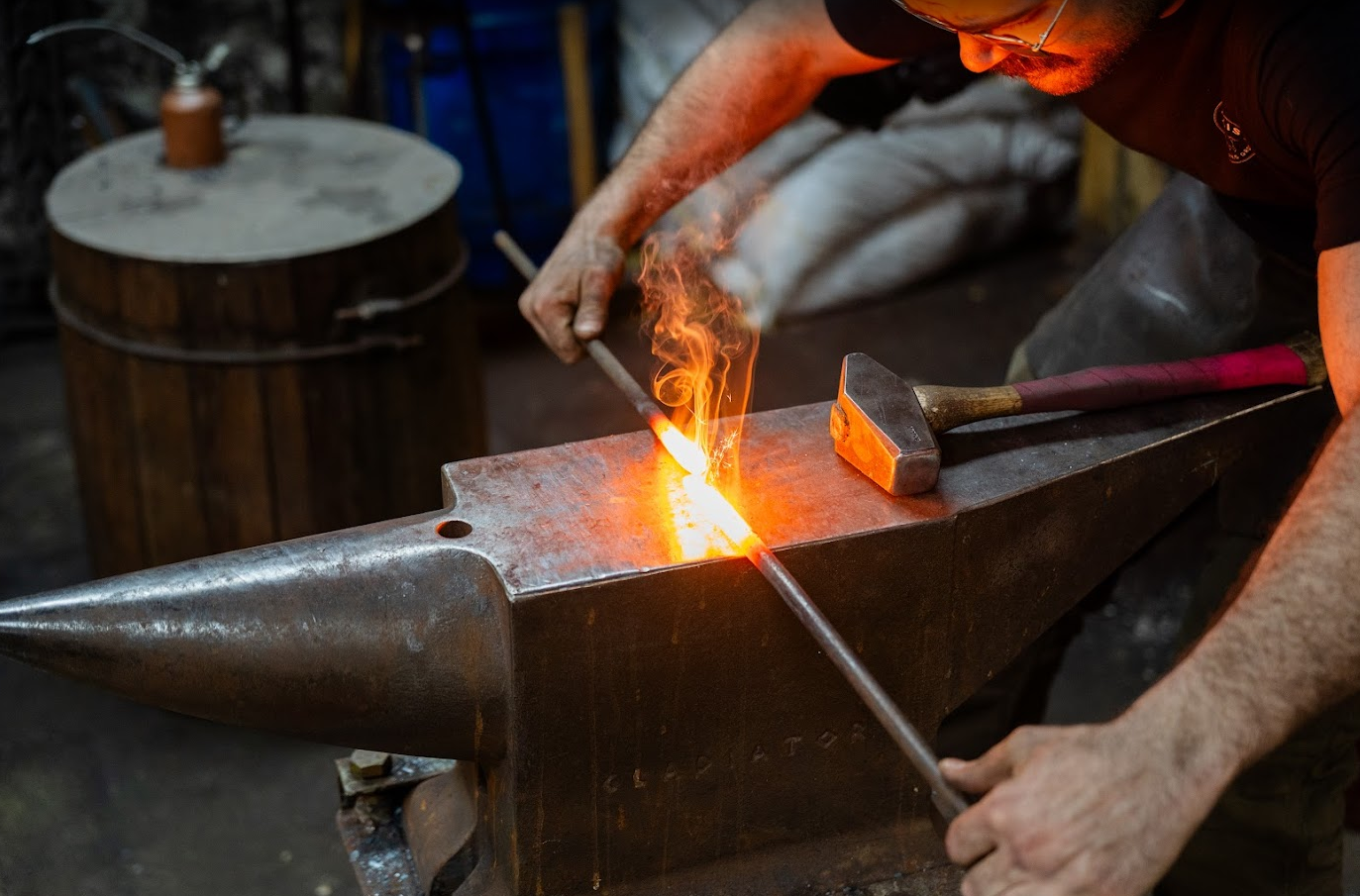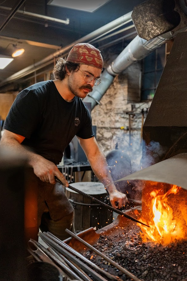 I had a few shops in Massachusetts and moved to Portland with my wife Laura in 2024 where I took over the former location of The Ball and Chain Forge. I am a member in good standing of both the Artist Blacksmith Association of North America (ABANA) and New England Blacksmiths (NEB) and an ABANA-certified Journeyman smith and National Curriculum Instructor - the highest officially recognized skill level in North America.